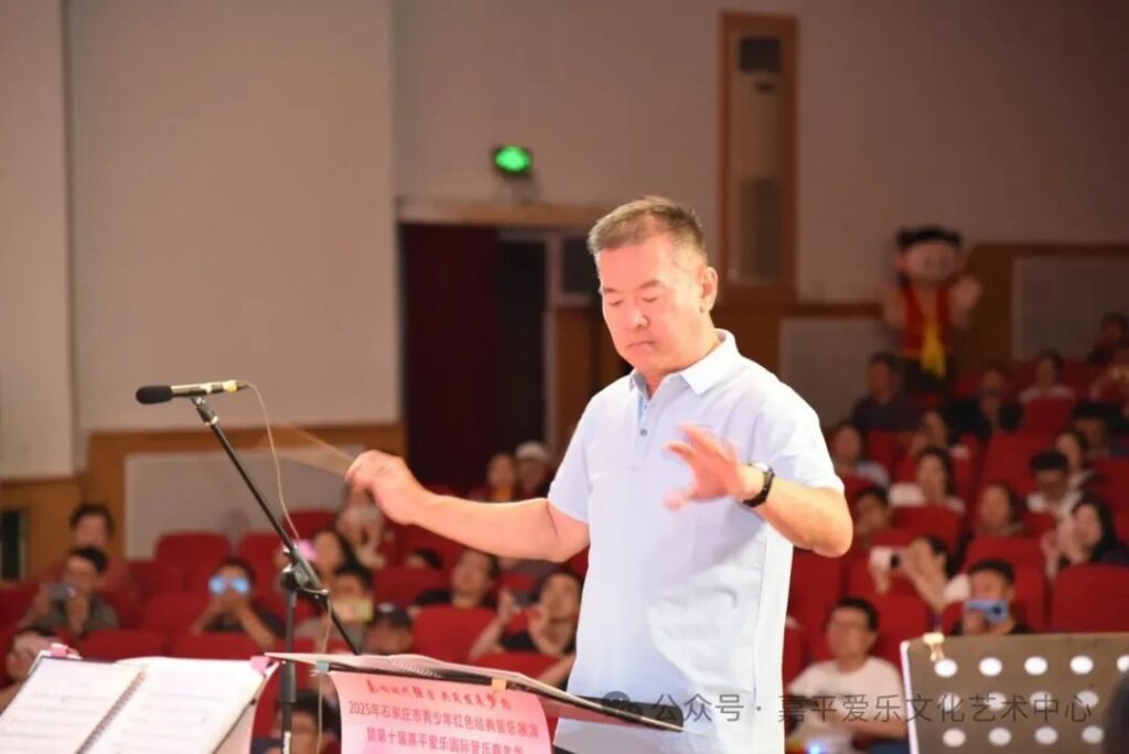 2025年6月,嘉平爱乐艺术教育中心“第十届国际管乐嘉年华”在河北省石家庄市举行,这场汇聚多所学校乐团、演绎红色经典的盛会,再次留下了林宗春先生的深刻印记——他不仅是特邀指挥,更是我们总结成长、规划未来的“同行者”。